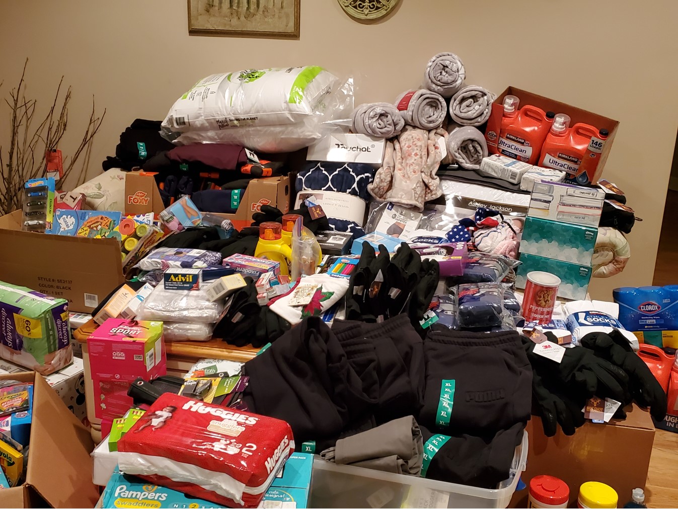 • Diapers. All sizes, both baby and adult. A manufacturer delivered a semi-trailer full!